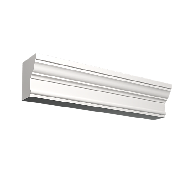 Основной материал карниза — алюминий, который известен своей прочностью и легкостью. Покрытие может быть выполнено из различных материалов, включая матовую и глянцевую краску, а также декоративные напыления.