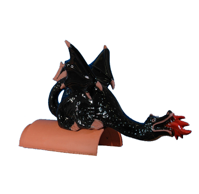 Декоративный элемент на кровлю Дракон огнедышащий, черный, глазурь, Purr-Keramic
