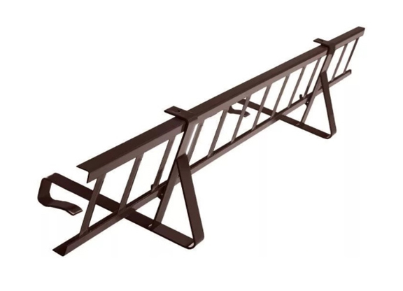 Снегозадерживающая решетка представляет собой конструкцию из высококачественной стали, окрашенную в яркий красный цвет. Размеры решетки составляют 2,5 метра в длину и 0,2 метра в ширину, что делает ее идеальной для использования на различных типах крыш. Материал решетки покрыт фосфатированным эпоксидным защитным слоем (ФЭЗ), который обеспечивает долговечность и устойчивость к коррозии. Конструкция решетки продумана таким образом, чтобы эффективно задерживать снег и предотвращать его сход с крыши, что особенно важно в регионах с обильными снегопадами.