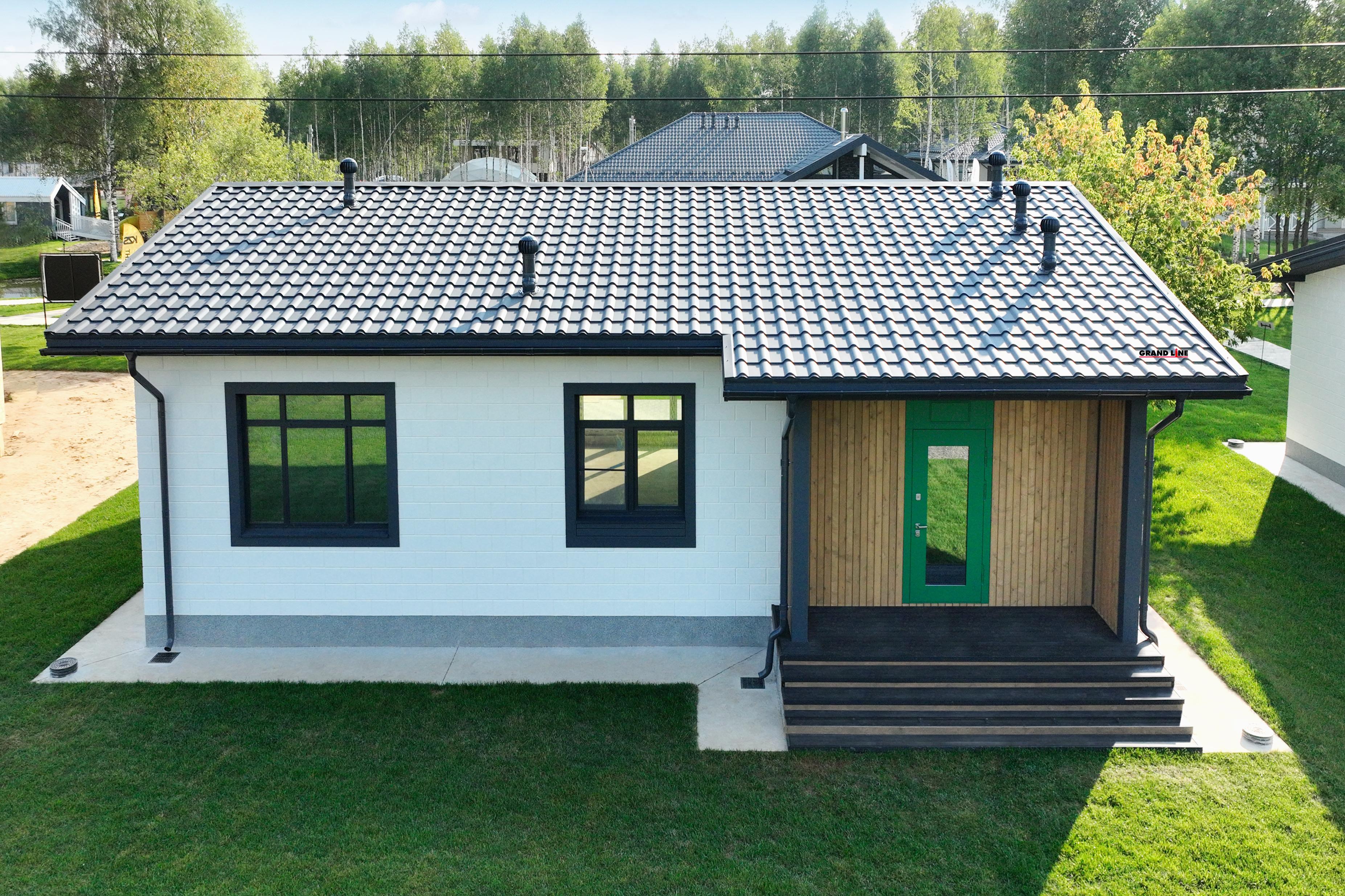 Металлочерепица Grand Line Kamea 0,5 PurLite Matt RAL 7024 Мокрый асфальт - это качественный и надежный материал для кровли, который обладает превосходными характеристиками. Изготовлена из металла толщиной 0,5 мм, что обеспечивает ее прочность и долговечность. Покрытие PurLite Matt RAL 7024 Мокрый асфальт придает металлочерепице элегантный и стильный вид, а также защищает ее от воздействия атмосферных явлений и коррозии. Благодаря своей форме и размерам, Grand Line Kamea легко монтируется и обеспечивает надежную защиту кровли от протечек и утечек. Этот материал идеально подходит для использования на крышах жилых и коммерческих зданий, обеспечивая надежность и эстетическую привлекательность.