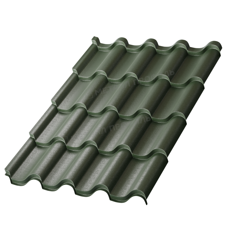 Металлочерепица Металл-Профиль Монтерроса-ML 0,45 VikingMP® RAL 6007 Бутылочно-зеленый - это качественный и надежный материал для кровли, который обладает превосходными характеристиками. Изготовлена из высококачественной стали с полимерным покрытием, что делает ее устойчивой к коррозии и воздействию атмосферных условий. Благодаря своей форме и размерам, металлочерепица легко монтируется и обеспечивает надежную защиту от протечек и влаги. Бутылочно-зеленый цвет придает кровле эстетичный и стильный вид, что позволяет создать уникальный дизайн дома или здания. Этот товар отличается долговечностью и долгосрочной эксплуатацией, что делает его отличным выбором для любого типа кровли.