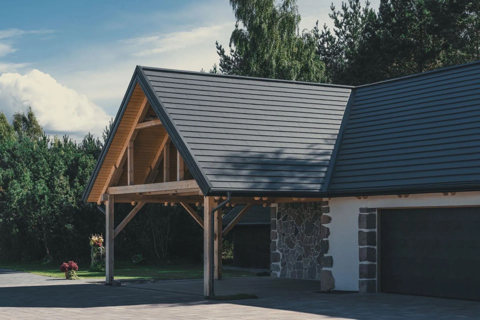 Металлочерепица Ruukki Hyygge без ребер относится к новейшим разработкам финского производителя. В ней сочетаются преимущества фальцевой кровли и классической модульной черепицы. Основу профилей составляют металлические листы толщиной 0,6 мм. Чтобы защитить их от коррозии, применяется технология нанесения тонкого, но относительно плотного цинкового слоя. Полимерное покрытие дает дополнительную защиту, оберегая панели от разрушающего действия ультрафиолетового излучения, осадков, температурных перепадов, механического износа. Что касается эстетики коллекции, то металлочерепицу Ruukki Hyygge выбирают поклонники смелых дизайнерских решений. Выполненная с помощью этого материала кровля смотрится необычайно легко, при этом она создает особенное настроение, подчеркивает индивидуальный стиль объектов.