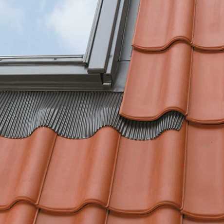 Обеспечивает водонепроницаемое соединение окна с кровлей из металлочерепицы, цементно-песчаной черепицы, керамической черепицы и других кровельных материалов с высотой профиля до 120 мм.