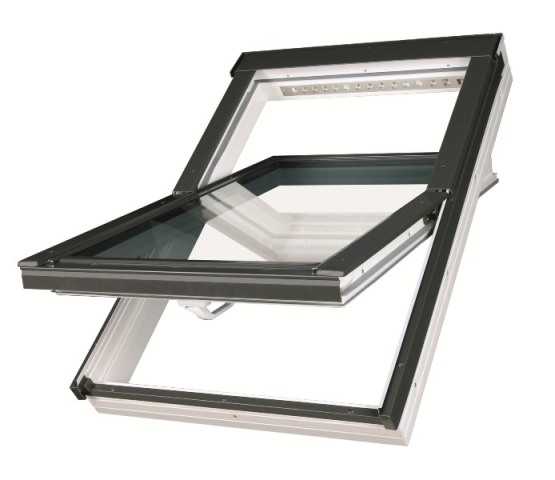 Мансардное окно Fakro РТР-V U3 белое с вентиляционным клапаном из многокамерного профиля ПВХ со стеклопакетом U3 серии PLUS со среднеповоротным открыванием. Стальная конструкция петель с пластиковыми направляющими не только смягчает ход оконной створки, но и придает необходимую прочность и жесткость в условиях ветровых и снеговых нагрузок.