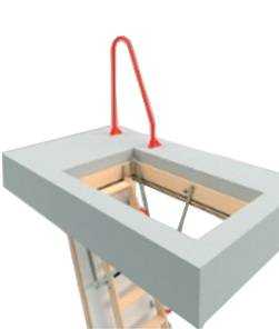 Металлический поручень устанавливается к полу чердака непосредственно возле проема для выхода на чердак.