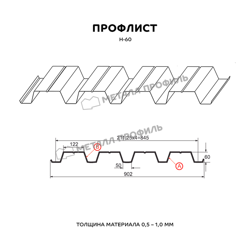 Профлист Металл-Профиль Н-60 NormanMP 0.5 мм RAL 9002 Серо-белый - это качественный и надежный материал для строительства и отделки различных объектов. Он изготовлен из прочного металла толщиной 0.5 мм, что обеспечивает ему долговечность и стойкость к внешним воздействиям.