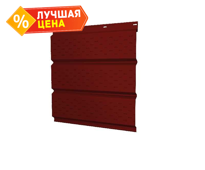 Софит металлический полная перфорация 0,45 PE с пленкой RAL 3011 коричнево-красный - это качественный и надежный материал, который используется для отделки фасадов зданий. Софит обладает полной перфорацией, что позволяет ему обеспечивать хорошую вентиляцию и защиту от влаги. Он изготовлен из металла толщиной 0,45 мм, что делает его прочным и долговечным. Пленка RAL 3011 коричнево-красного цвета придает софиту эстетичный и стильный внешний вид, который легко сочетается с различными архитектурными стилями. Этот софит идеально подходит для использования как на коммерческих, так и на жилых объектах, обеспечивая надежную защиту и привлекательный внешний вид.